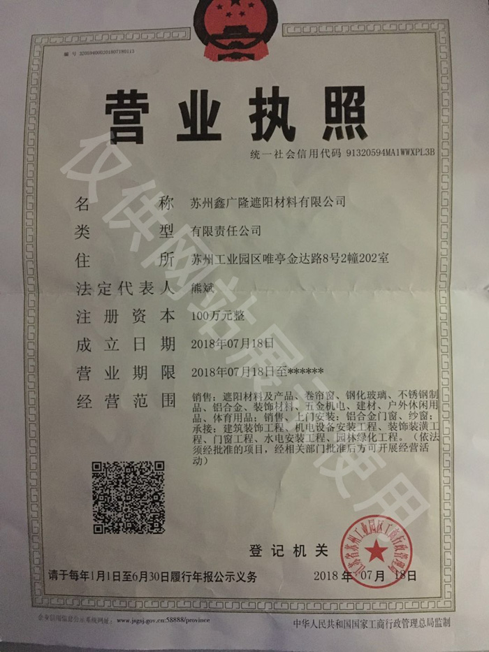 蘇州鑫廣隆遮陽材料有限公司上線成功! more+